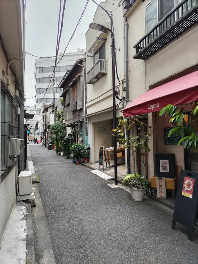 神田古本屋街の一本中の道はあまり知らないけれど、おもしろい感覚の路地が広がる。